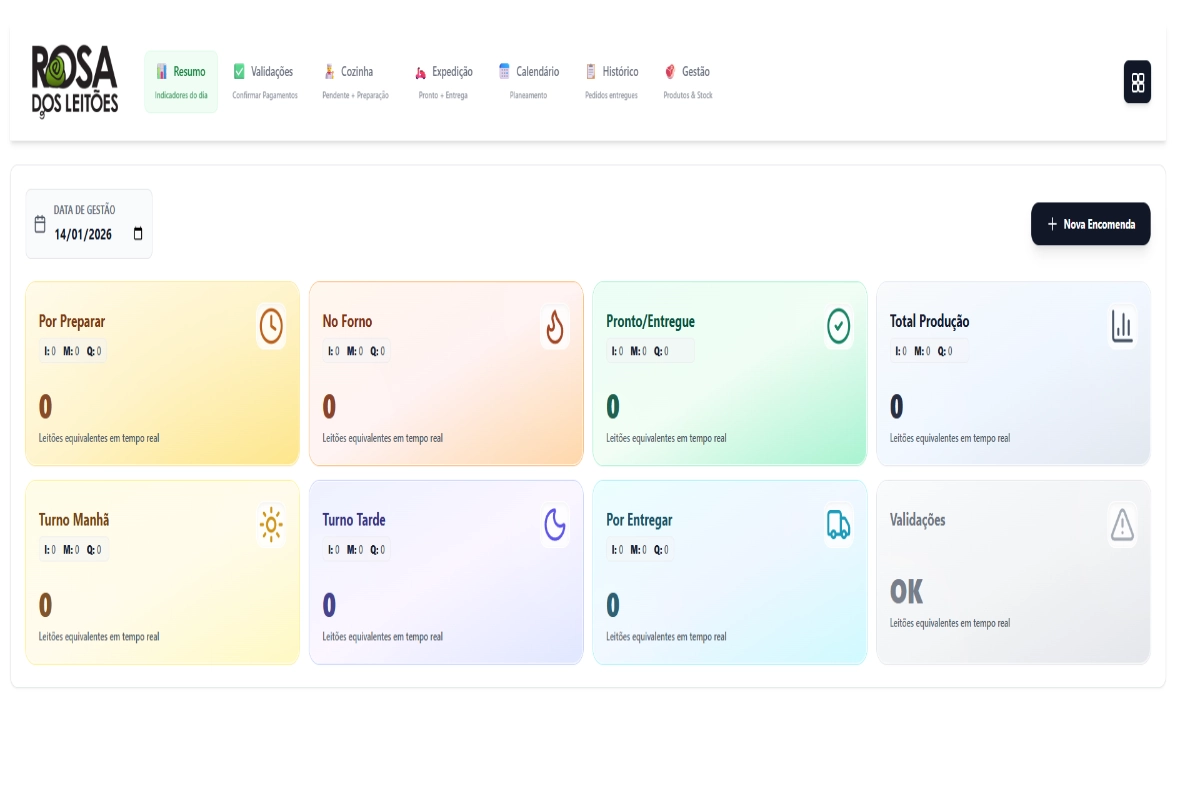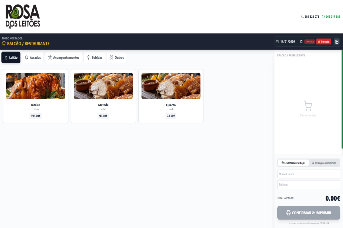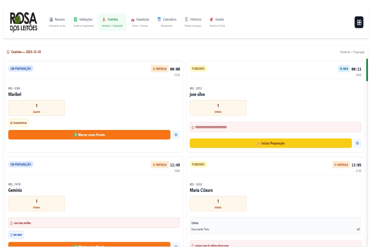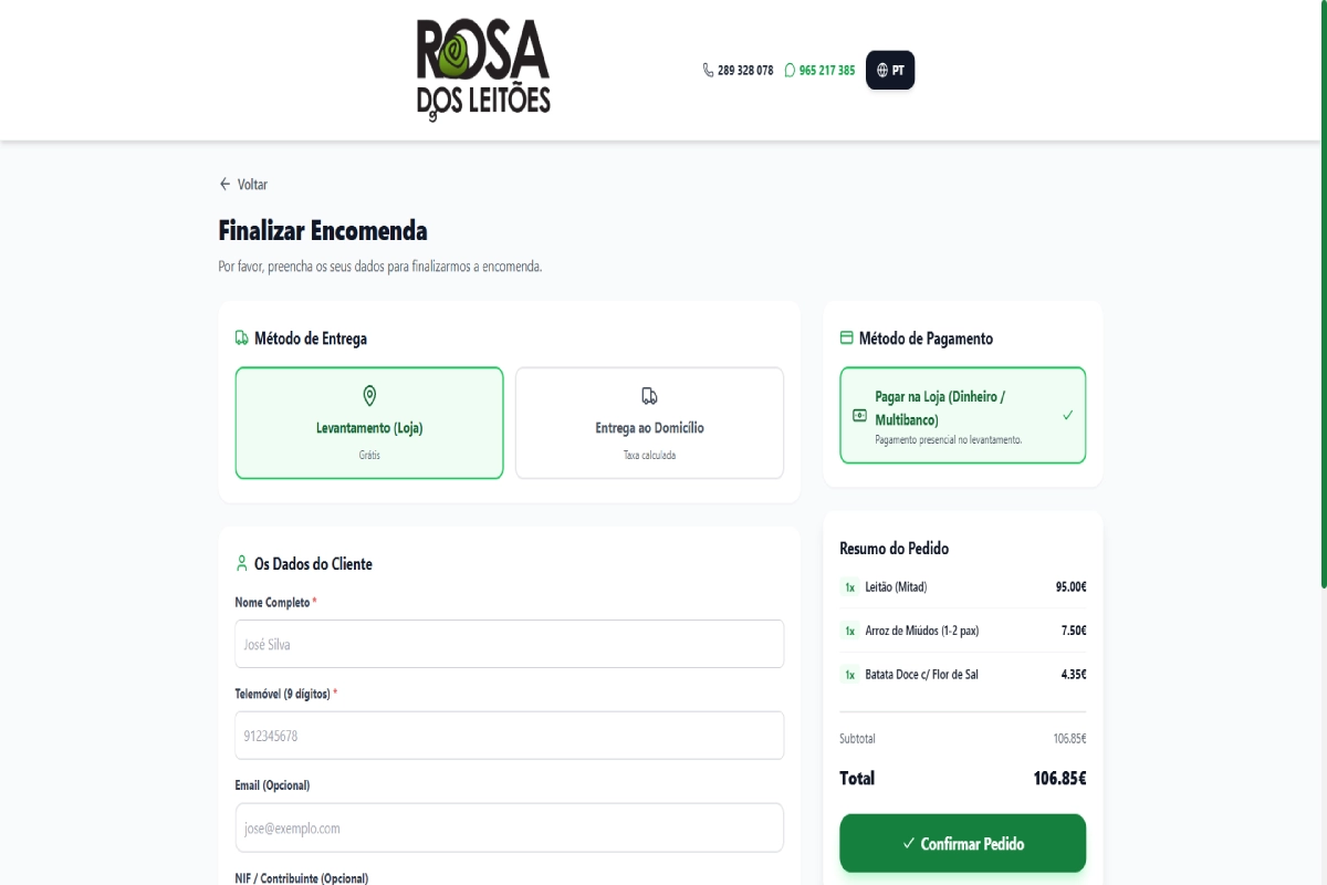 A unidade da Rosa dos Leitões em Quarteira enfrentava um desafio crítico: o sucesso das vendas estava a ultrapassar a capacidade de gestão manual. Pedidos telefónicos e online geravam atrasos logísticos. O projeto exigia uma solução de engenharia digital que centralizasse toda a operação.