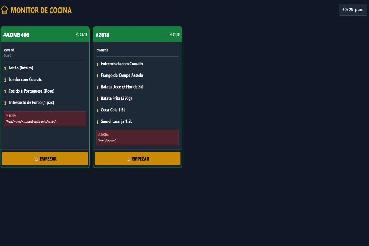KDS (Cozinha): Gestão visual organizada por prioridade.
